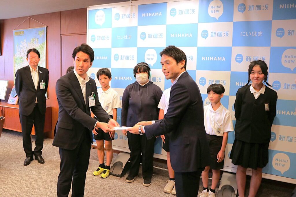 2025年度、新規で寄贈をした新居浜市においては、6月5日(木)新居浜市役所市長応接室にて寄贈式を開催しました。