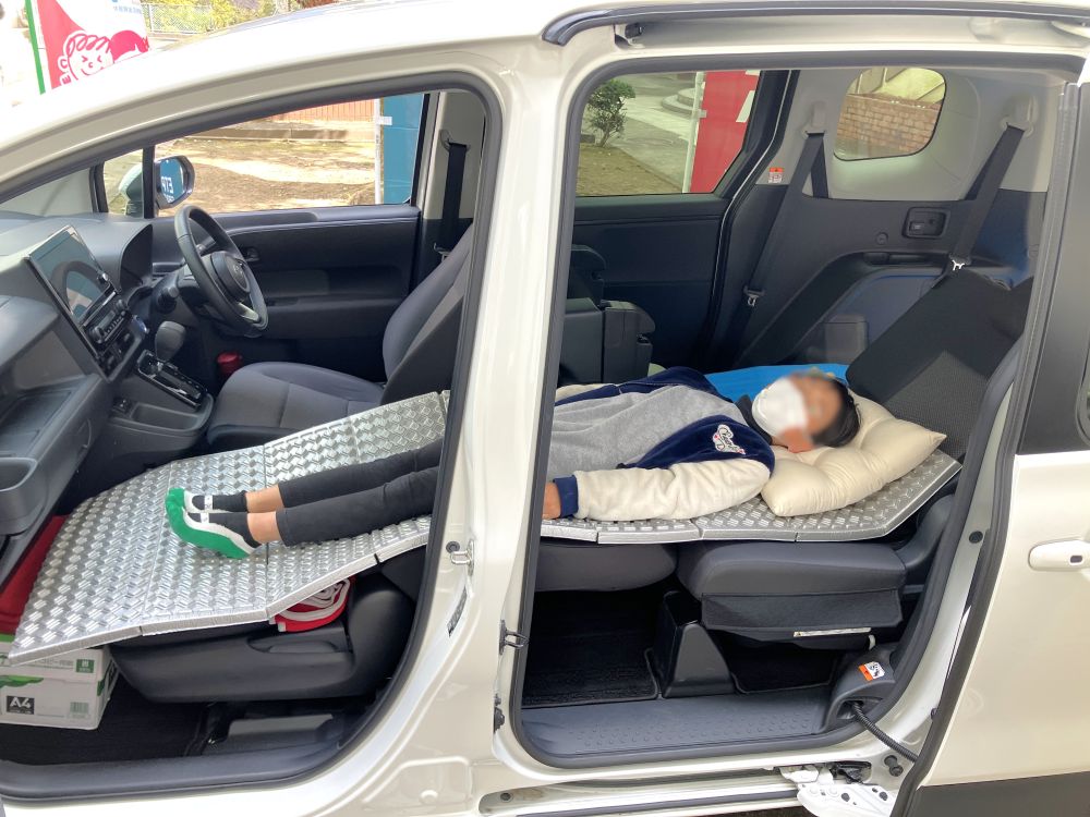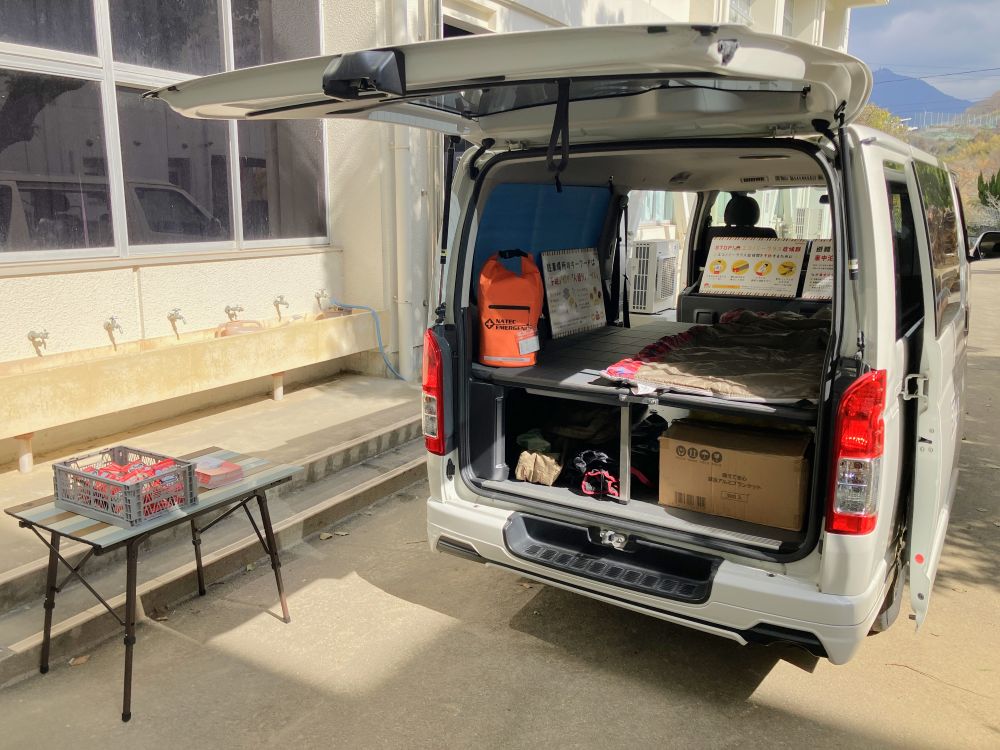 ETPグループは、「車中泊の模擬体験」を出展させていただきました。マットやクッションを設置した車両に実際に寝転んでもらいながら、車中泊をする際どのような工夫をすると良いかなど、お伝えさせていただきました。